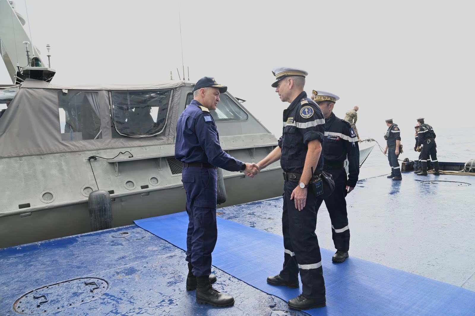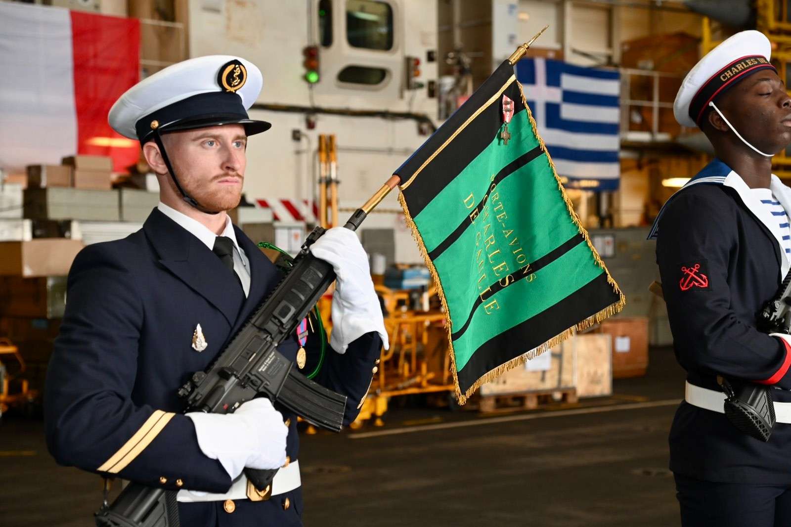 Ο Αρχηγός ΓΕΝ Αντιναύαρχος Δημήτριος – Ελευθέριος Κατάρας ΠΝ, εκπροσωπώντας και τον Αρχηγό ΓΕΕΘΑ Στρατηγό Δημήτριο Χούπη, πραγματοποίησε εθιμοτυπική επίσκεψη στο γαλλικό αεροπλανοφόρο, όπου τον υποδέχθηκε ο Γάλλος Διοικητής της Ναυτικής Δύναμης Task Force 473, Υποναύαρχος Jacques Mallard και ο Κυβερνήτης του αεροπλανοφόρου, Πλοίαρχος Georges-Antoine Florentin.